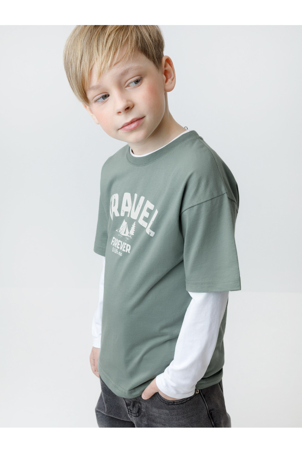 Футболка для мальчика из высококачественного трикотажного полотна. Оригинальный принт выполнен из стойких текстильных красителей. Изделие сохраняет цвет и форму после многократных стирок. Все трикотажные полотна производятся в соответствии с нормами швейцарского сертификата ЭкоТекс.