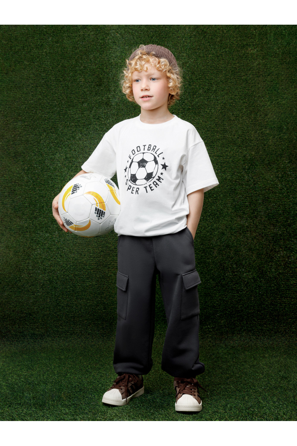 Футболка для мальчика из высококачественного трикотажного полотна. Оригинальный принт выполнен из стойких текстильных красителей. Изделие сохраняет цвет и форму после многократных стирок. Все трикотажные полотна производятся в соответствии с нормами швейцарского сертификата ЭкоТекс.