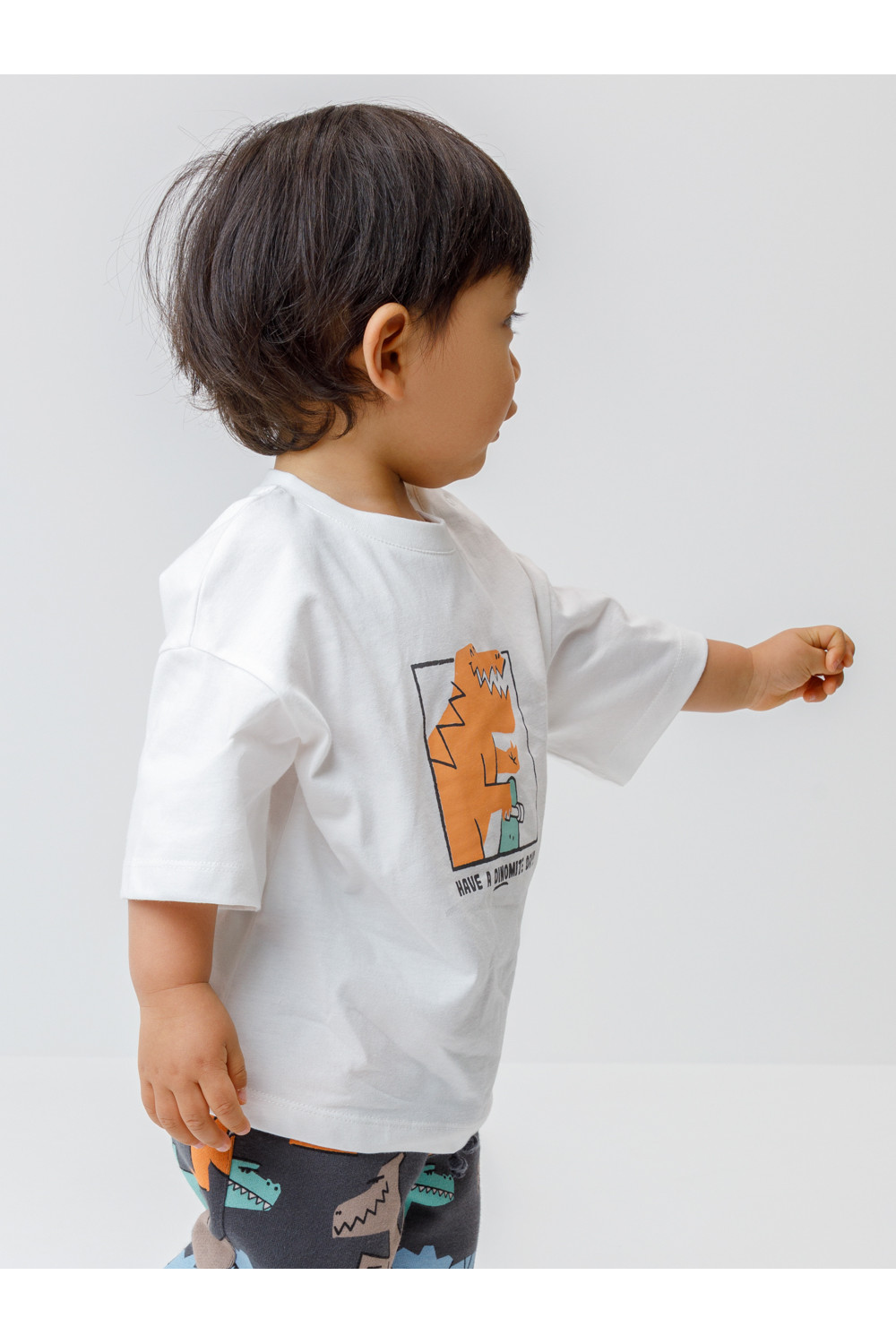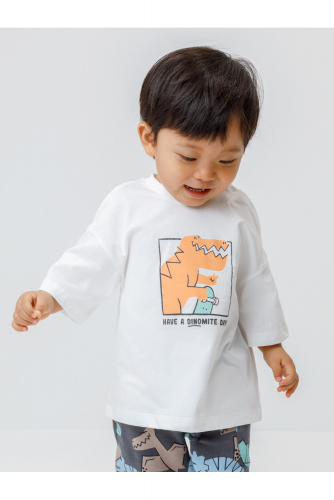 Футболка для мальчика из высококачественного трикотажного полотна.Застёгивается на плече на кнопки. Оригинальный рисунок выполнен из стойких текстильных красителей. Изделие сохраняет цвет и форму после многократных стирок. Все трикотажные полотна производятся в соответствии с нормами швейцарского сертификата ЭкоТекс.