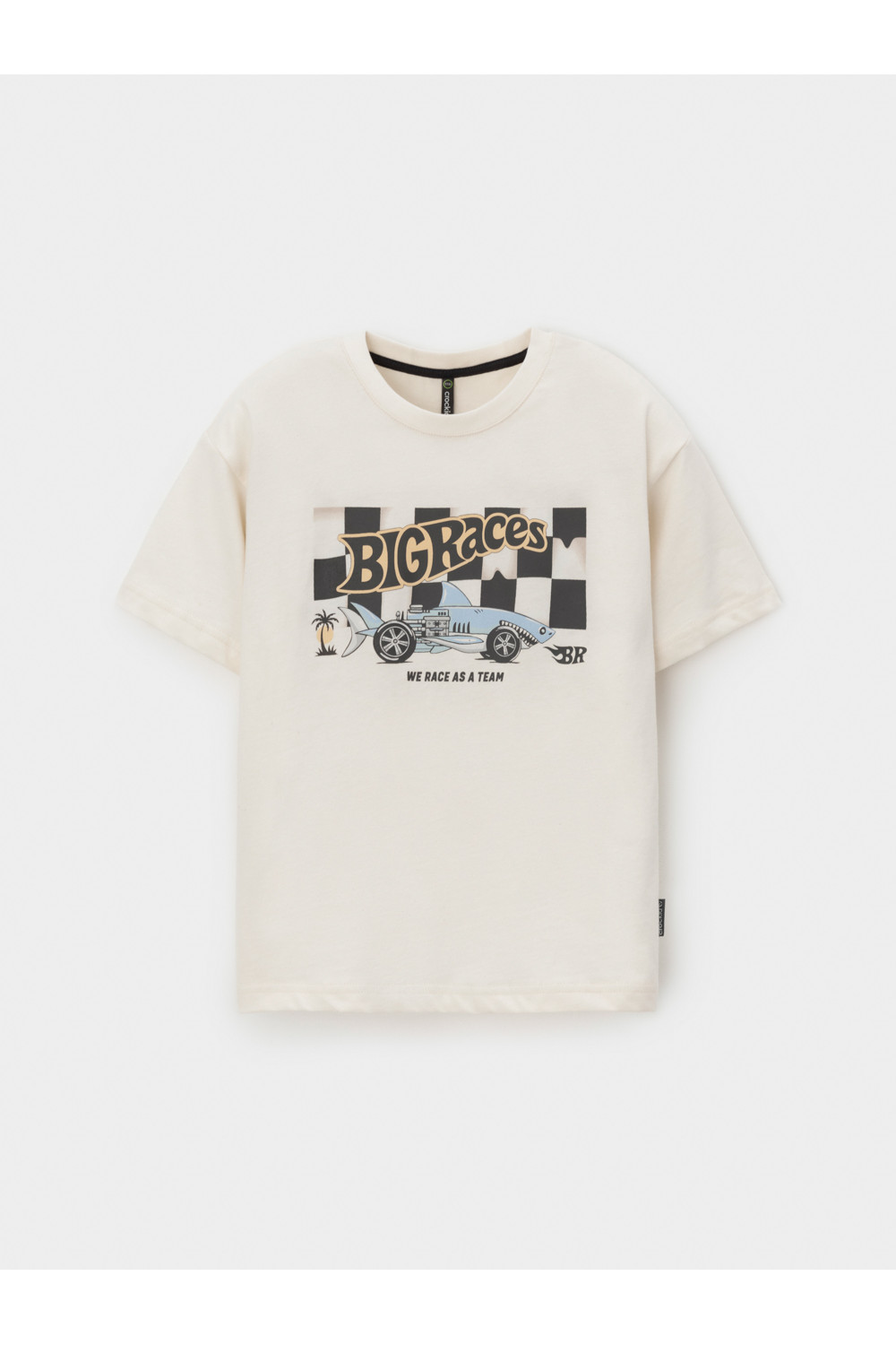 Футболка для мальчика из высококачественного трикотажного полотна. Оригинальный принт выполнен из стойких текстильных красителей. Изделие сохраняет цвет и форму после многократных стирок. Все трикотажные полотна производятся в соответствии с нормами швейцарского сертификата ЭкоТекс.