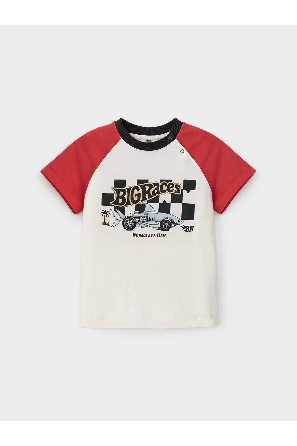 Футболка для мальчика из высококачественного трикотажного полотна. Застёгивается на кнопки. Оригинальный принт выполнен из стойких текстильных красителей. Изделие сохраняет цвет и форму после многократных стирок. Все трикотажные полотна производятся в соответствии с нормами швейцарского сертификата ЭкоТекс.
