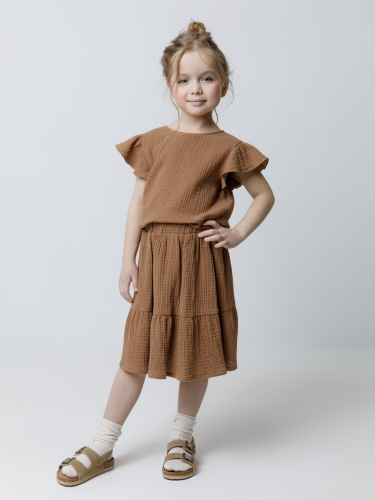 Легкая детская рубашка свободного кроя из мягкого хлопокового муслина, слегка спущенной линией плеча, длинными рукавами и с застежкой на пуговицы. Изделие сохраняет цвет, форму и фактуру жатости после многократных стирок.