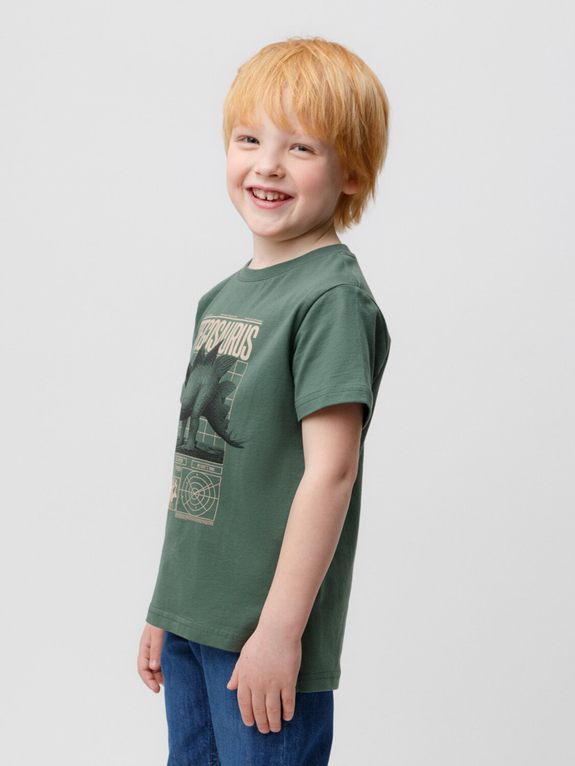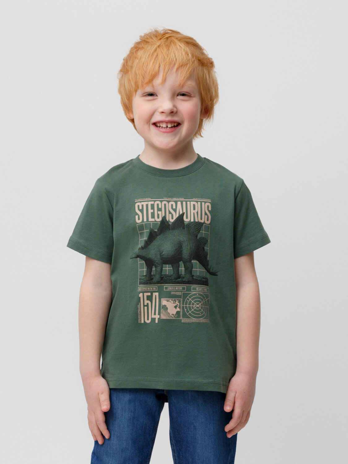 Трикотажная футболка для мальчика из натурального хлопка. У изделия короткие втачные рукава, удлинённая спинка и небольшие разрезы в боковых швах. Оригинальный принт выполнен из стойких текстильных гипоаллергенных красителей. Футболка сохраняет цвет и форму после многократных стирок.