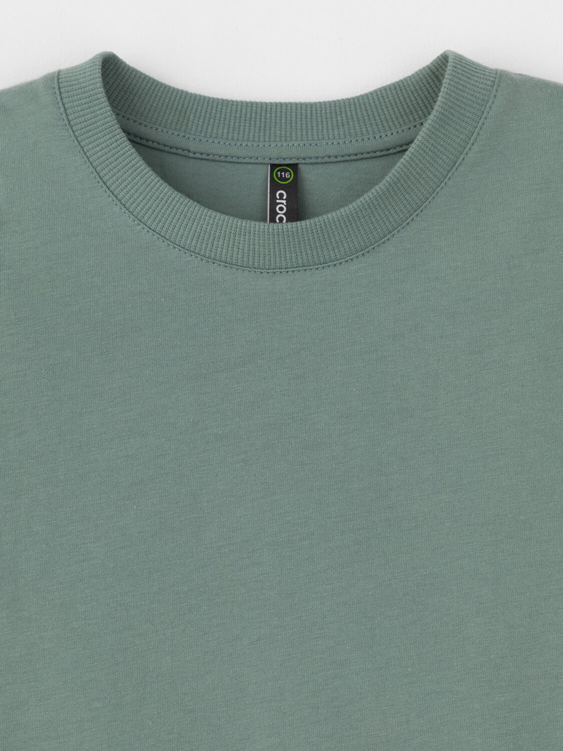 Однотонная футболка для мальчика из высококачественного трикотажного полотна. Для удобства одевания в размерах 92 и 98 застёгивается на спинке с помощью кнопок.