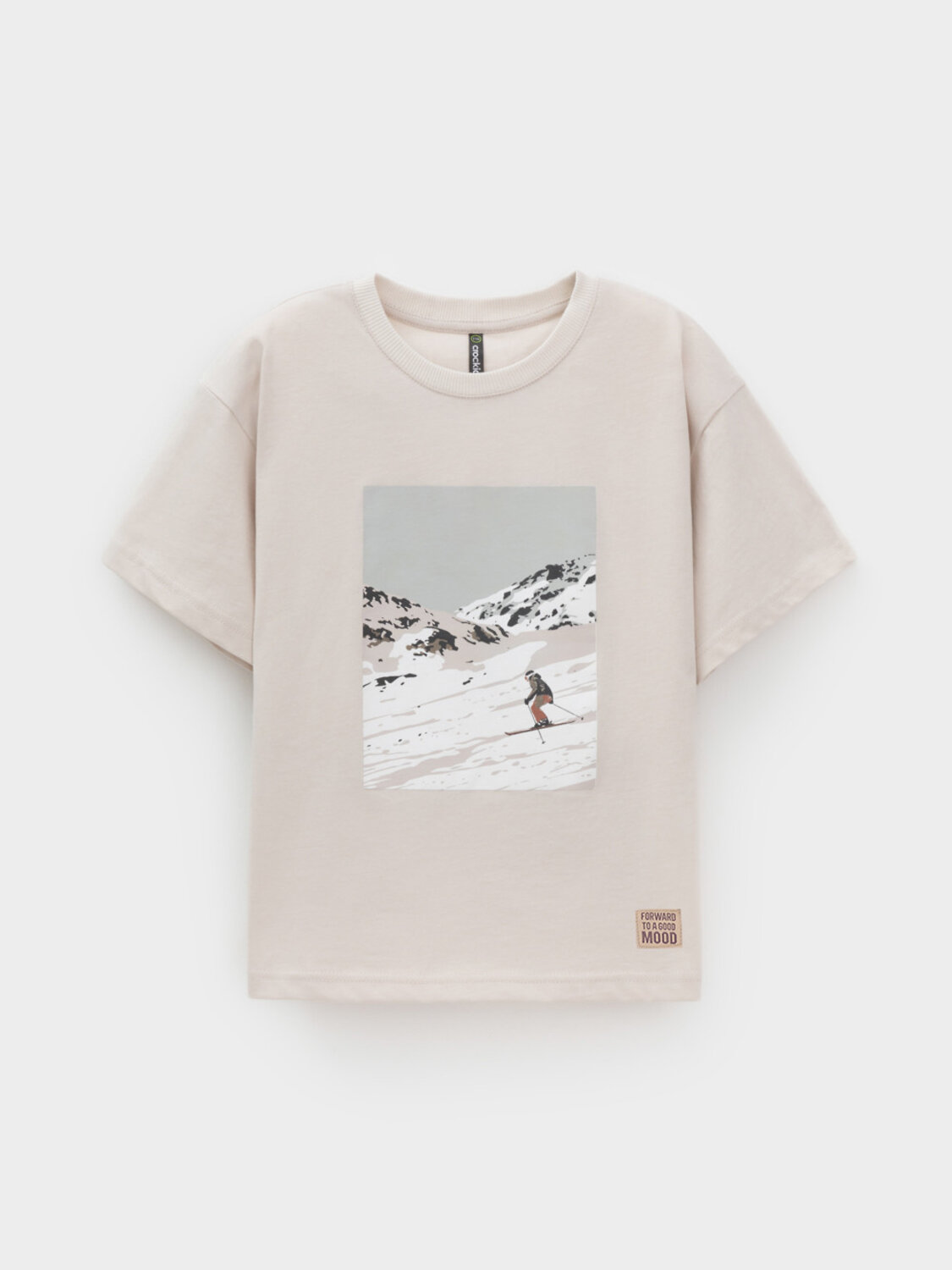 Футболка для мальчика из гладкого трикотажа, произведённого из высококачественного натурального хлопка. Для удобства одевания имеется застёжка на кнопки в размерах 92 и 98. Оригинальный принт выполнен из стойких текстильных гипоаллергенных красителей. Изделие сохраняет цвет и форму после многократных стирок. Все трикотажные полотна производятся в соответствии с нормами швейцарского сертификата ЭкоТекс.