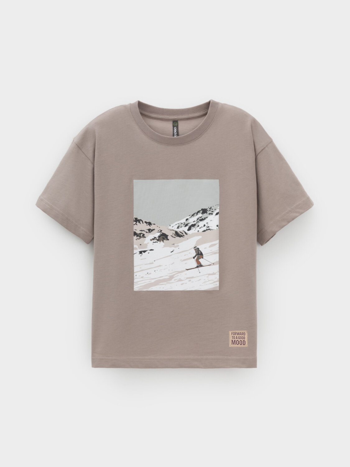 Футболка для мальчика из гладкого трикотажа, произведённого из высококачественного натурального хлопка. Для удобства одевания имеется застёжка на кнопки в размерах 92 и 98. Оригинальный принт выполнен из стойких текстильных гипоаллергенных красителей. Изделие сохраняет цвет и форму после многократных стирок. Все трикотажные полотна производятся в соответствии с нормами швейцарского сертификата ЭкоТекс.