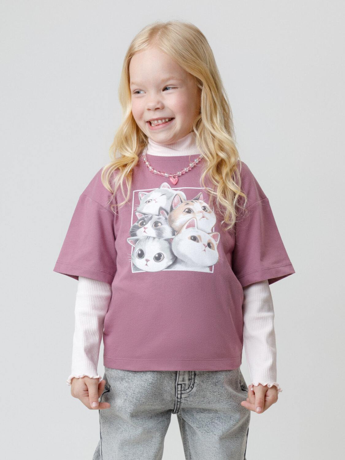 Футболка для девочки из гладкого трикотажа, произведённого из высококачественного натурального хлопка. В 92 и 98 размерах для удобства при одевании застёгивается на кнопки. Оригинальный принт выполнен из стойких текстильных гипоаллергенных красителей. Изделие сохраняет цвет и форму после многократных стирок. Все трикотажные полотна производятся в соответствии с нормами швейцарского сертификата ЭкоТекс.
