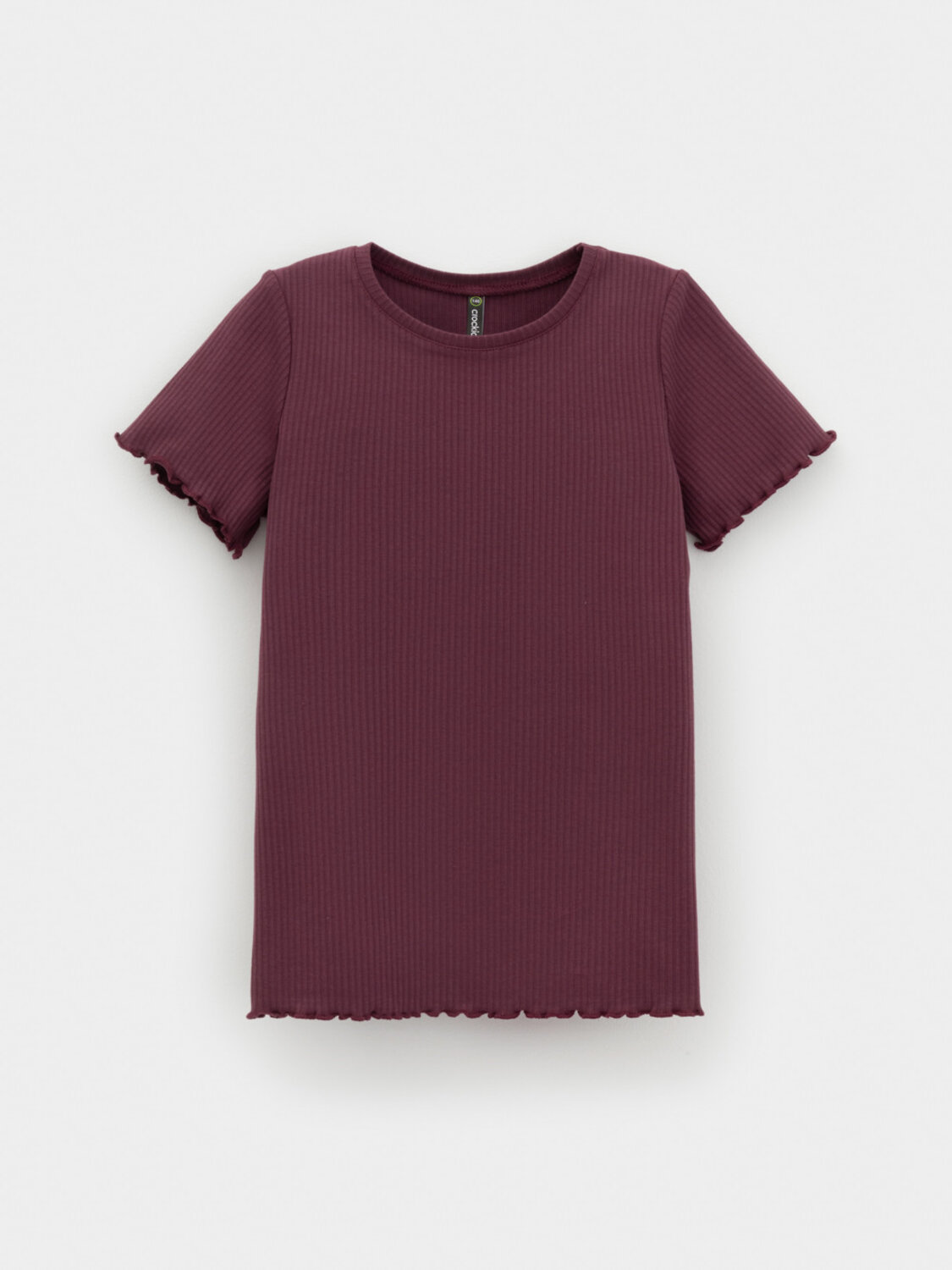 Футболка для девочки из эластичного трикотажа в рубчик. Изделие сохраняет цвет и форму после многократных стирок. Все трикотажные полотна производятся в соответствии с нормами швейцарского сертификата ЭкоТекс.