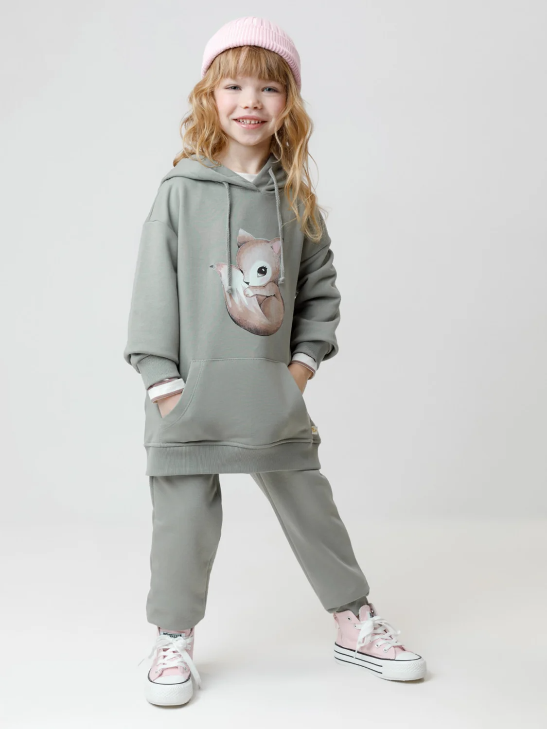 Худи с капюшоном для девочки из мягкого футера трёхнитки с начёсом. Пояс и манжеты выполнены из мягкого эластичного трикотажа. Худи сохраняет форму и стойкий цвет после многочисленных стирок и идеально подходит на каждый день. Оригинальный принт выполнен из стойких текстильных гипоаллергенных красителей. Все трикотажные полотна производятся в соответствии с нормами швейцарского сертификата ЭкоТекс.