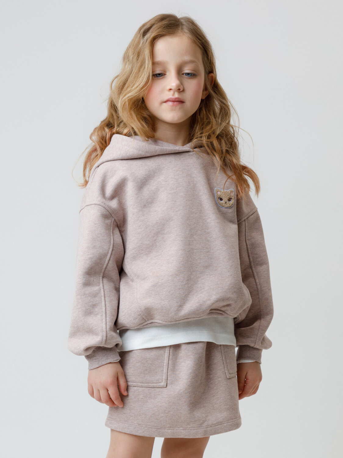 Худи с капюшоном для девочки из мягкого петельчатого футера трёхнитки. Модель оверсайз. Пояс и манжеты выполнены из эластичного трикотажа. Худи сохраняет форму и стойкий цвет после многочисленных стирок и идеально подходит на каждый день. Оригинальный принт выполнен из стойких текстильных гипоаллергенных красителей. Все трикотажные полотна производятся в соответствии с нормами швейцарского сертификата ЭкоТекс.