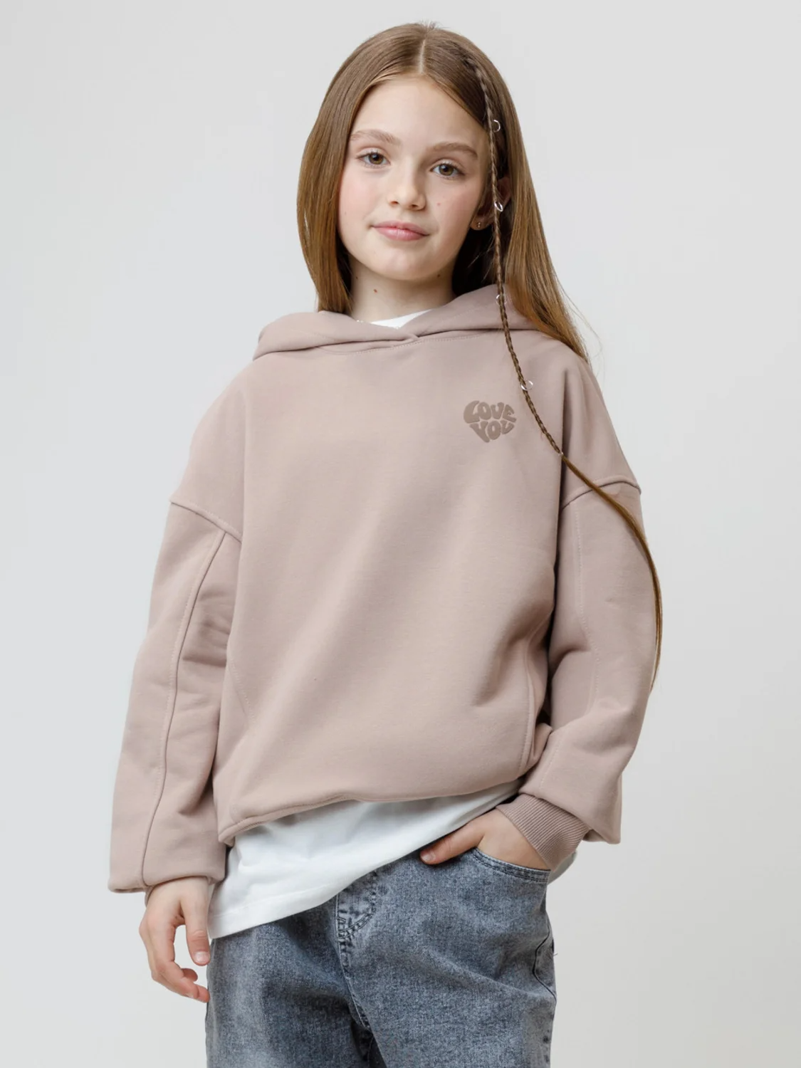 Худи с капюшоном для девочки из мягкого петельчатого футера трёхнитки. Модель оверсайз. Пояс и манжеты выполнены из эластичного трикотажа. Худи сохраняет форму и стойкий цвет после многочисленных стирок и идеально подходит на каждый день. Оригинальный принт выполнен из стойких текстильных гипоаллергенных красителей. Все трикотажные полотна производятся в соответствии с нормами швейцарского сертификата ЭкоТекс.