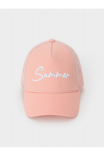 Кепка для девочки из текстиля и сетки. Спереди украшена оригинальной вышивкой. Регулируется по ширине головы и фиксируется на затылке с помощью пластиковой застёжки.