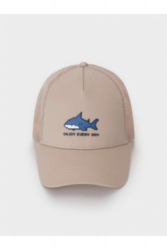 Кепка для мальчика из текстиля и сетки. Спереди украшена оригинальным рельефным принтом. Регулируется по ширине головы и фиксируется на затылке с помощью пластиковой застёжки.