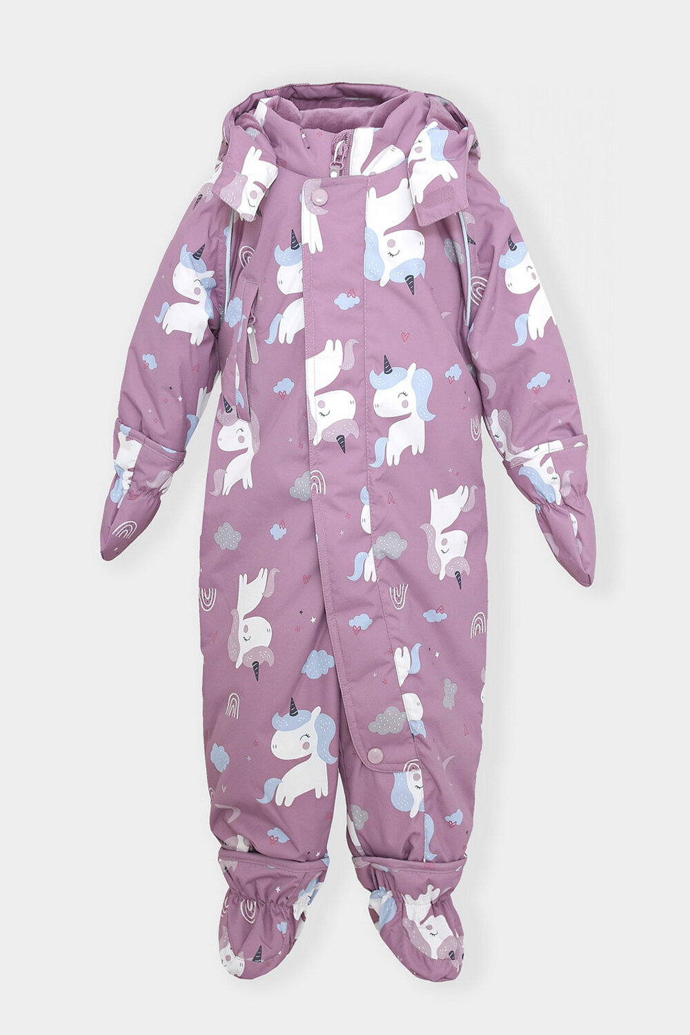 • Дополнительно в размерах 68-74, 74-80, 80-86 пристегивающиеся утепленные варежки и пинетки.