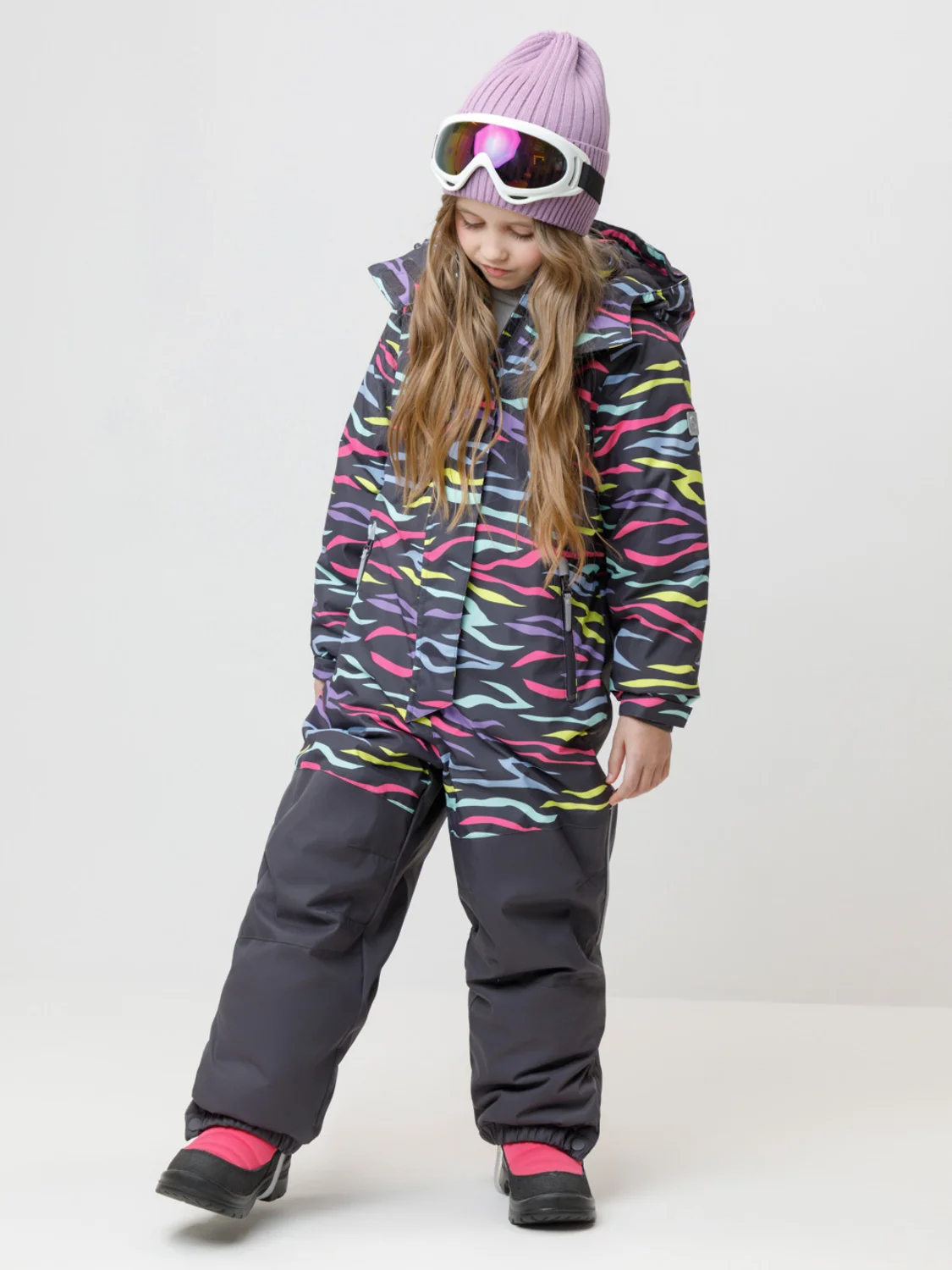 Зимний комбинезон для девочки с утеплителем SEE®: 250 г/м2 . Выполнен из мембранной ткани с дополнительной тефлоновой обработкой, которая предохраняет изделие от загрязнений и отталкивает влагу. Подклад выполнен из 100% полиэстера Tricot. Комбинезон застёгивается на молнию и внешнюю планку на липучках и кнопках, предусмотрена защита подбородка. Съёмный капюшон имеет эластичную утяжку со стопперами. Резинка по спинке обеспечивает лучшее прилегание. По бокам два кармана на молнии. Эластичные манжеты на рукавах регулируются по ширине с помощью липучки, по низу изделия - с помощью кнопки. Внутренняя противоснежная юбка защищает обувь от попадания снега и удерживает комбинезон в закреплённом положении, предусмотрены отстёгивающиеся штрипки до размера 116-122 включительно. Во всех изделиях верхнего ассортимента для безопасности ребёнка предусмотрены светоотражающие элементы.