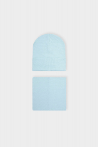 Комплект детский: шапка и снуд из хлопкового трикотажа в рубчик с добавлением эластана, окрашенного стойкими гипоаллергенными текстильными красителями. Изделия хорошо тянутся, после многократных стирок сохраняют цвет и форму.