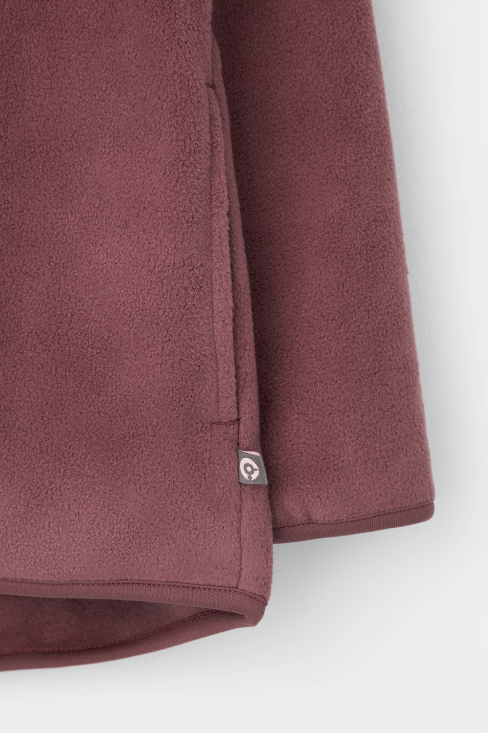 Флисовая куртка для мальчика. У изделия удлинённая спинка, высокий воротник, предусмотрена защита шеи и подбородка. Рукава-реглан и низ изделия обработаны эластичным кантом для лучшего прилегания к телу, по бокам два кармана. Куртка сохраняет цвет и форму после многократных стирок.