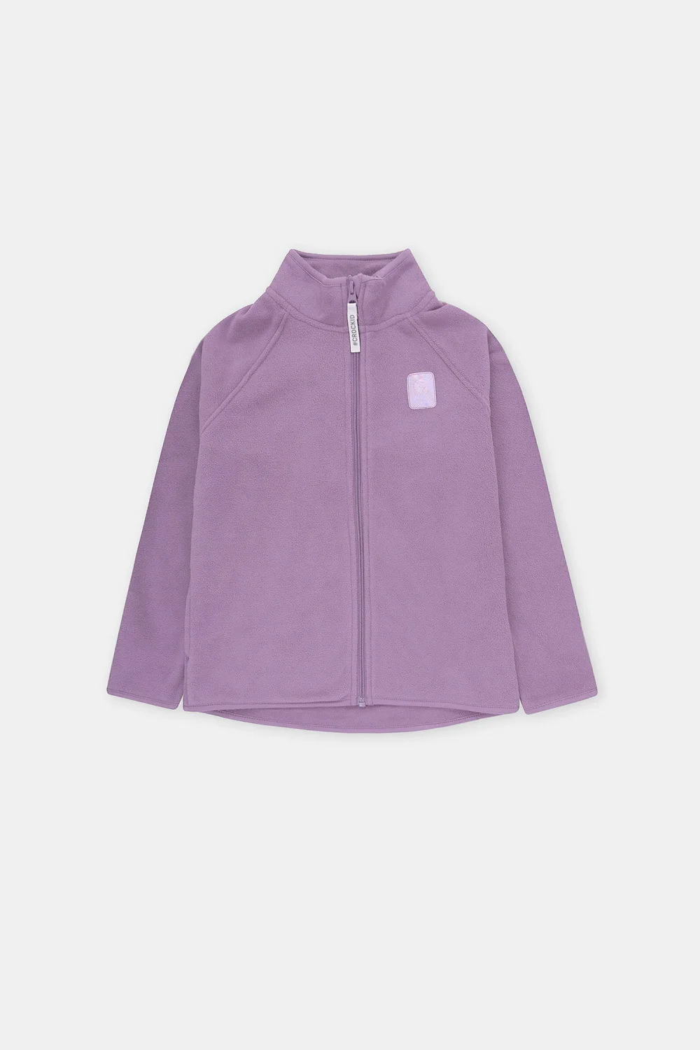 Флисовая куртка для девочки. У изделия удлинённая спинка, высокий воротник, предусмотрена защита шеи и подбородка. Рукава-реглан и низ изделия обработаны эластичным кантом для лучшего прилегания к телу, по бокам два кармана. Куртка сохраняет цвет и форму после многократных стирок.