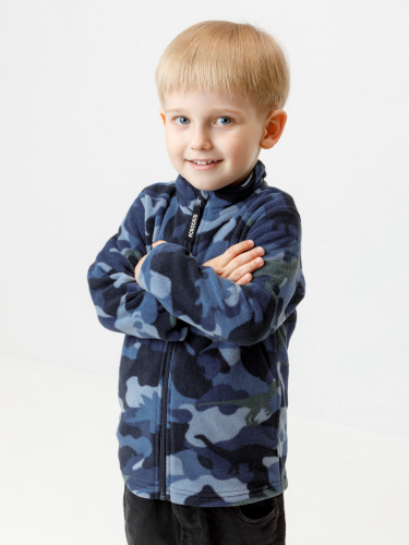 Флисовая куртка для мальчика. У изделия высокий воротник и застёжка на молнию с мягкой защитой шеи и подбородка. По бокам два кармана. Оригинальная набивка выполнена из стойких гипоаллергенных текстильных красителей. Куртка сохраняет цвет и форму после многократных стирок.