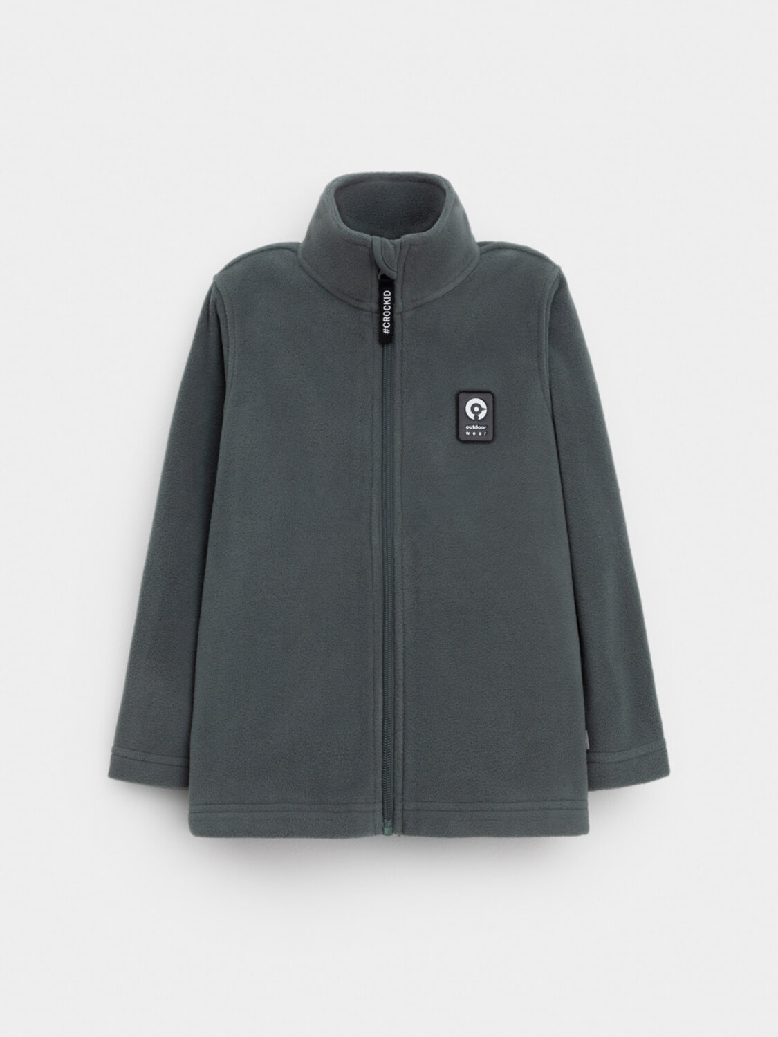 Флисовая куртка для мальчика. У изделия высокий воротник и застёжка на молнию с мягкой защитой шеи и подбородка. По бокам два кармана. Куртка сохраняет цвет и форму после многократных стирок.