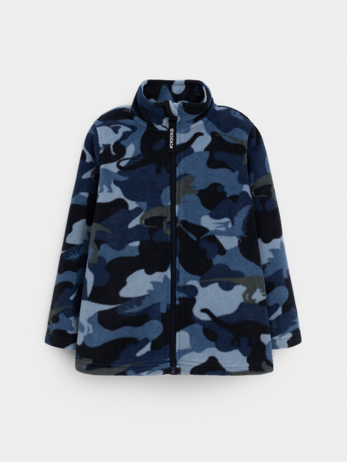 Флисовая куртка для мальчика. У изделия высокий воротник и застёжка на молнию с мягкой защитой шеи и подбородка. По бокам два кармана. Оригинальная набивка выполнена из стойких гипоаллергенных текстильных красителей. Куртка сохраняет цвет и форму после многократных стирок.