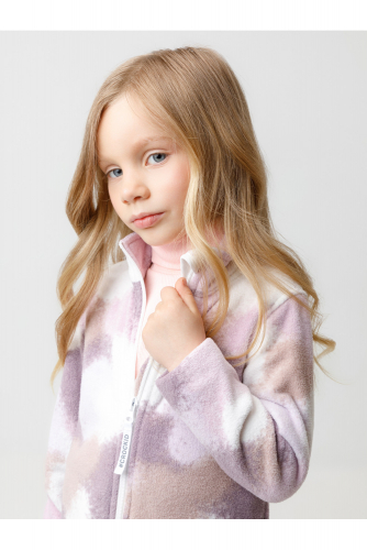 Флисовая куртка детская. У изделия высокий воротник и застёжка на молнию с мягкой защитой шеи и подбородка. По бокам два кармана. Рукава собраны на резинку. Низ изделия регулируется по ширине с помощью эластичной утяжки со стопперами. Куртка сохраняет цвет и форму после многократных стирок.