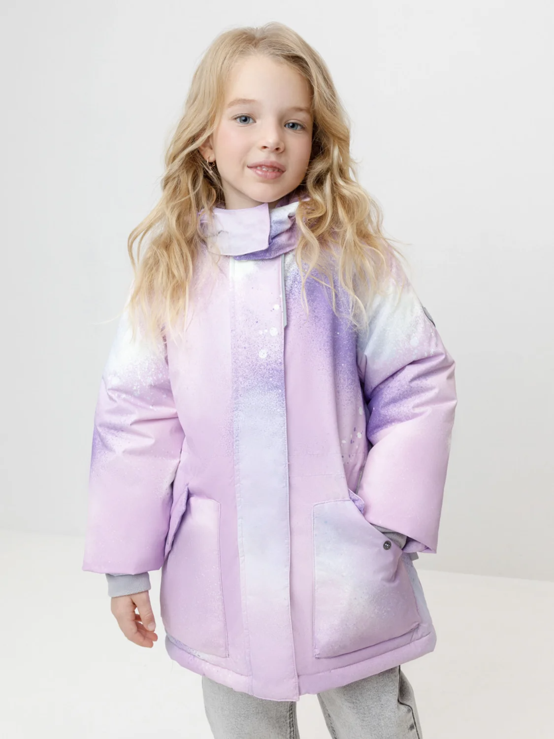 Зимняя куртка для девочки с утеплителем SEE®: 300 г/м2. Выполнена из мембранной ткани с дополнительной тефлоновой обработкой, которая предохраняет изделие от загрязнений и отталкивает влагу. Подклад выполнен из 100% полиэстера Tricot. Куртка застёгивается на молнию, предусмотрена защита подбородка. Съёмный капюшон на кнопках и липучках имеет эластичную утяжку со стопперами. На рукавах мягкие внутренние манжеты. По бокам два кармана с клапанами на кнопках. Изнутри кулиска по талии для регулировки ширины куртки. Во всех изделиях верхнего ассортимента для безопасности ребёнка предусмотрены светоотражающие элементы.