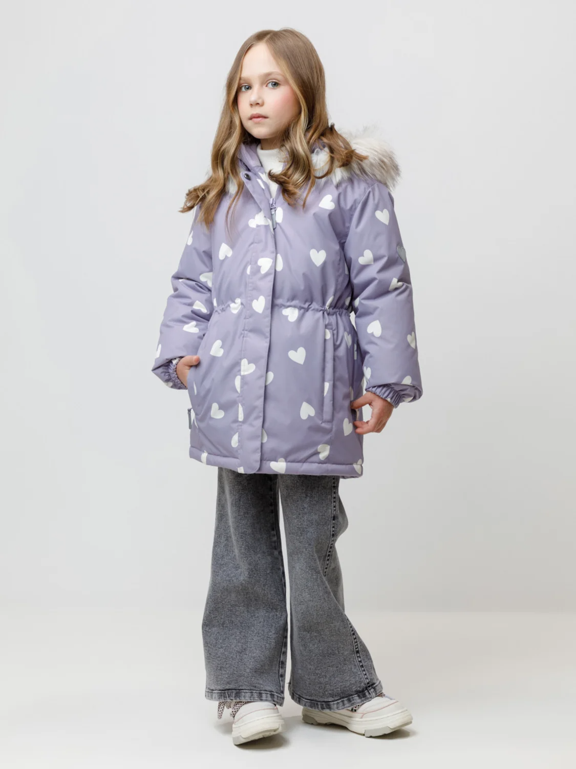 Зимняя куртка для девочки с утеплителем SEE®: 300 г/м2. Выполнена из мембранной ткани с дополнительной тефлоновой обработкой, которая предохраняет изделие от загрязнений и отталкивает влагу. Подклад выполнен из 100% полиэстера Tricot. Куртка застёгивается на молнию, предусмотрена защита подбородка. Съёмный капюшон на кнопках и липучках имеет отстёгивающийся искусственный мех. На рукавах эластичные манжеты на резинке. По бокам два кармана на молниях. По талии эластичная утяжка со стопперами для регулировки ширины куртки. Во всех изделиях верхнего ассортимента для безопасности ребёнка предусмотрены светоотражающие элементы.
