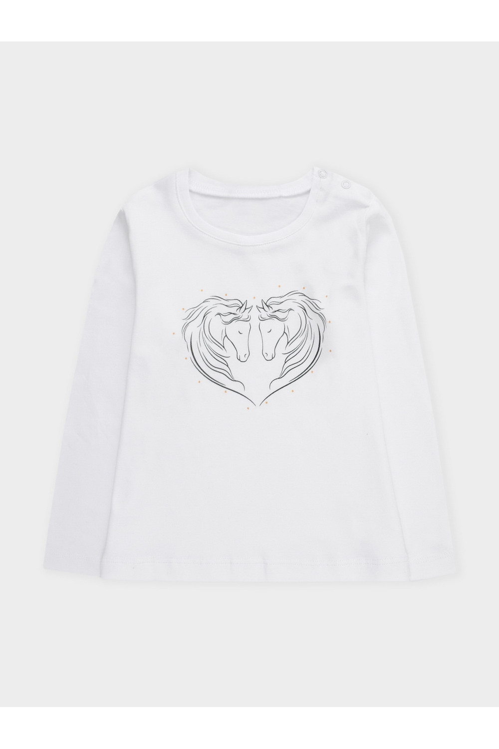 Лонгслив для девочки из гладкого эластичного трикотажа. В 92 и 98 размерах для удобства при одевании застёгивается на кнопки. Оригинальный принт выполнен из стойких текстильных гипоаллергенных красителей. Изделие сохраняет цвет и форму после многократных стирок. Все трикотажные полотна производятся в соответствии с нормами швейцарского сертификата ЭкоТекс.