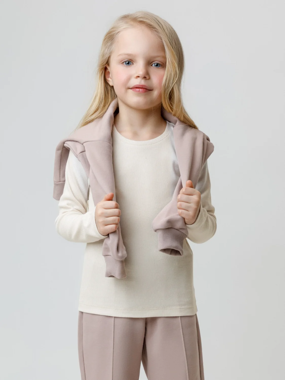 Однотонный лонгслив из эластичного трикотажа в рубчик для девочки. Лонгслив сохраняет форму и стойкий цвет после многочисленных стирок и идеально подходит на каждый день. Все трикотажные полотна производятся в соответствии с нормами швейцарского сертификата ЭкоТекс.