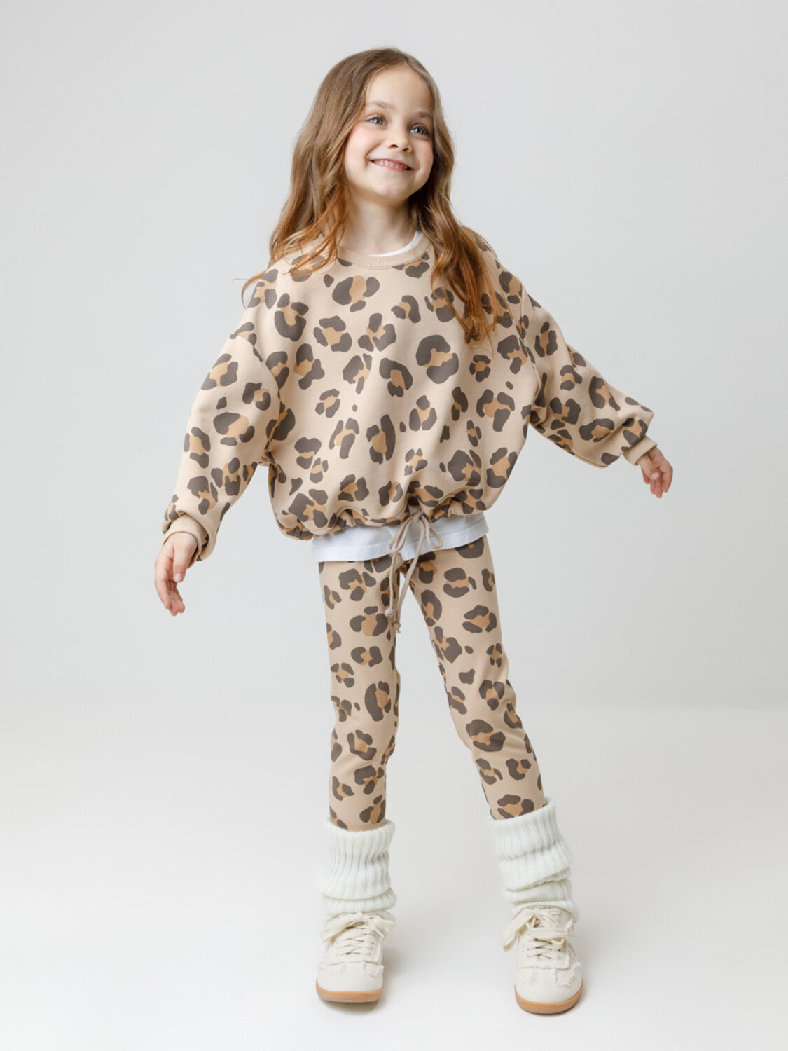 Трикотажные лосины для девочки из гладкого эластичного полотна. Оригинальный рисунок выполнен из стойких текстильных гипоаллергенных красителей. Изделие сохраняет цвет и форму после многократных стирок. Все трикотажные полотна производятся в соответствии с нормами швейцарского сертификата ЭкоТекс.