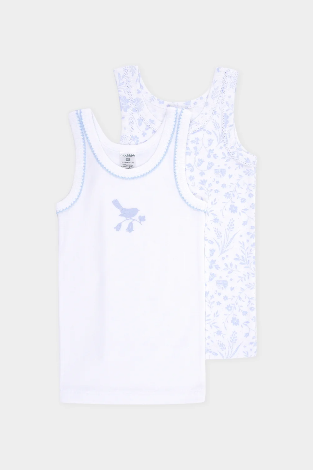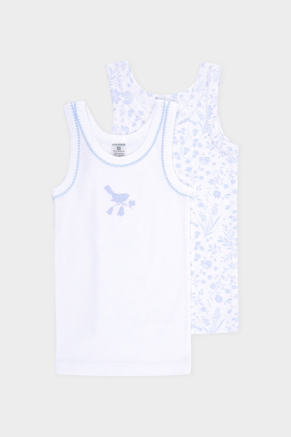 Трикотажные майки в комплекте 2 шт на лямках из натурального хлопка. Оригинальные набивка и принт выполнены из стойких, гипоаллергенных текстильных красителей. Изделие сохраняет цвет и форму после многократных стирок. Все трикотажные полотна производятся в соответсвии с нормами Швейцарского сертификата ЭкоТекс.