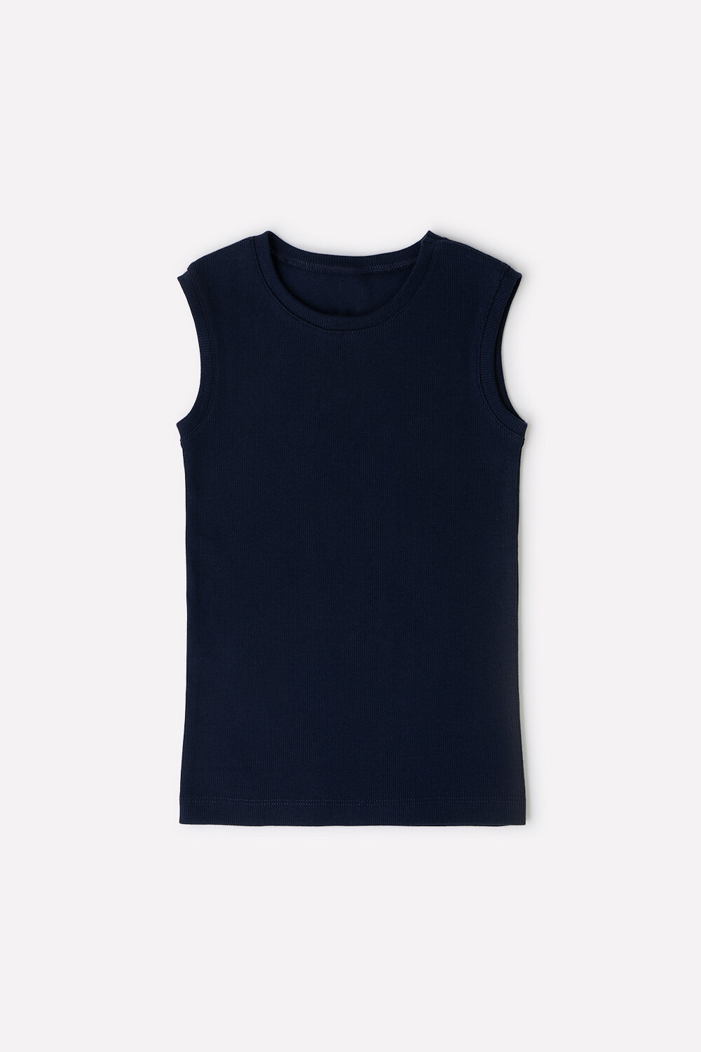 Лёгкая летняя майка в оттенке "индиго" для мальчика. Сшита из эластичного материала кашкорсе с добавлением эластана. Эластан в составе помогает изделию дольше сохранять опрятный вид и первоначальную форму.