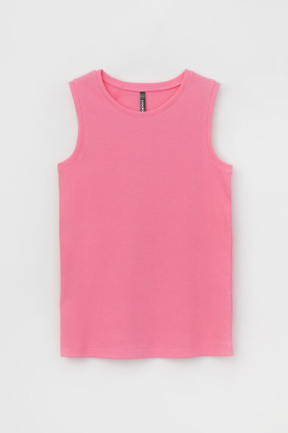 Трикотажная майка для девочки из эластичного полотна в рубчик.