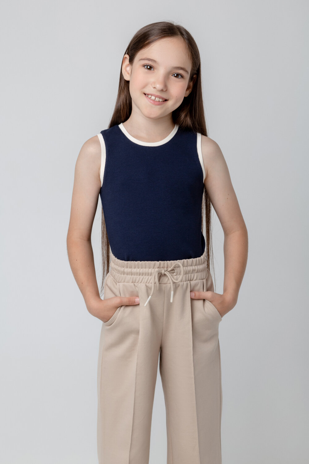 Трикотажная майка для девочки из эластичного полотна в рубчик.