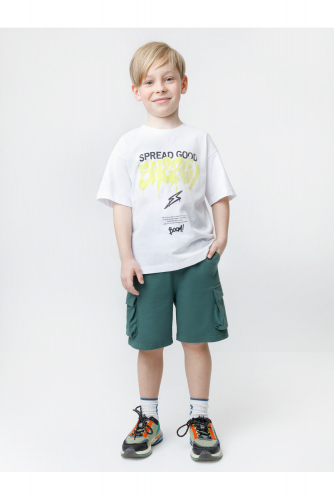 Майка для мальчика из высококачественного трикотажного полотна. Изделие сохраняет цвет и форму после многократных стирок. Все трикотажные полотна производятся в соответствии с нормами швейцарского сертификата ЭкоТекс.