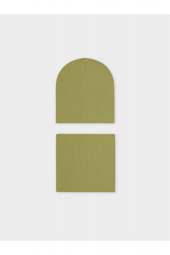 Комплект для мальчика: шапка и снуд из хлопкового трикотажа в рубчик с добавлением эластана, окрашенного стойкими гипоаллергенными текстильными красителями. Изделия хорошо тянутся, после многократных стирок сохраняют цвет и форму.