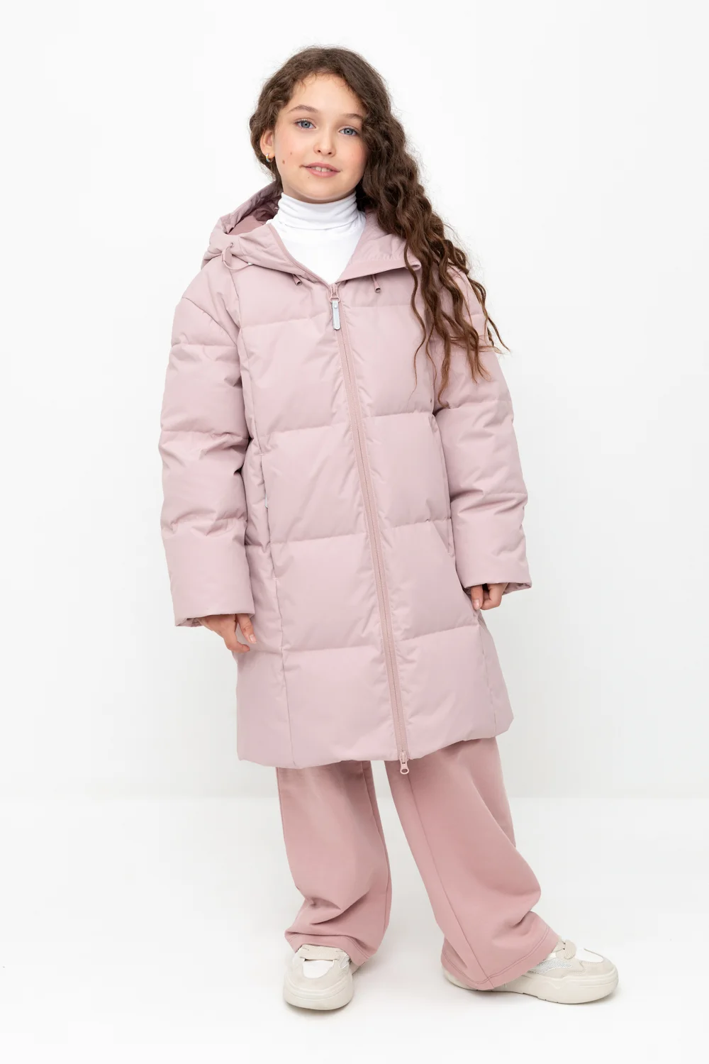 Пальто для девочки с натуральным утеплителем из гипоаллергенного гусиного пуха (70%) и пера (30%).