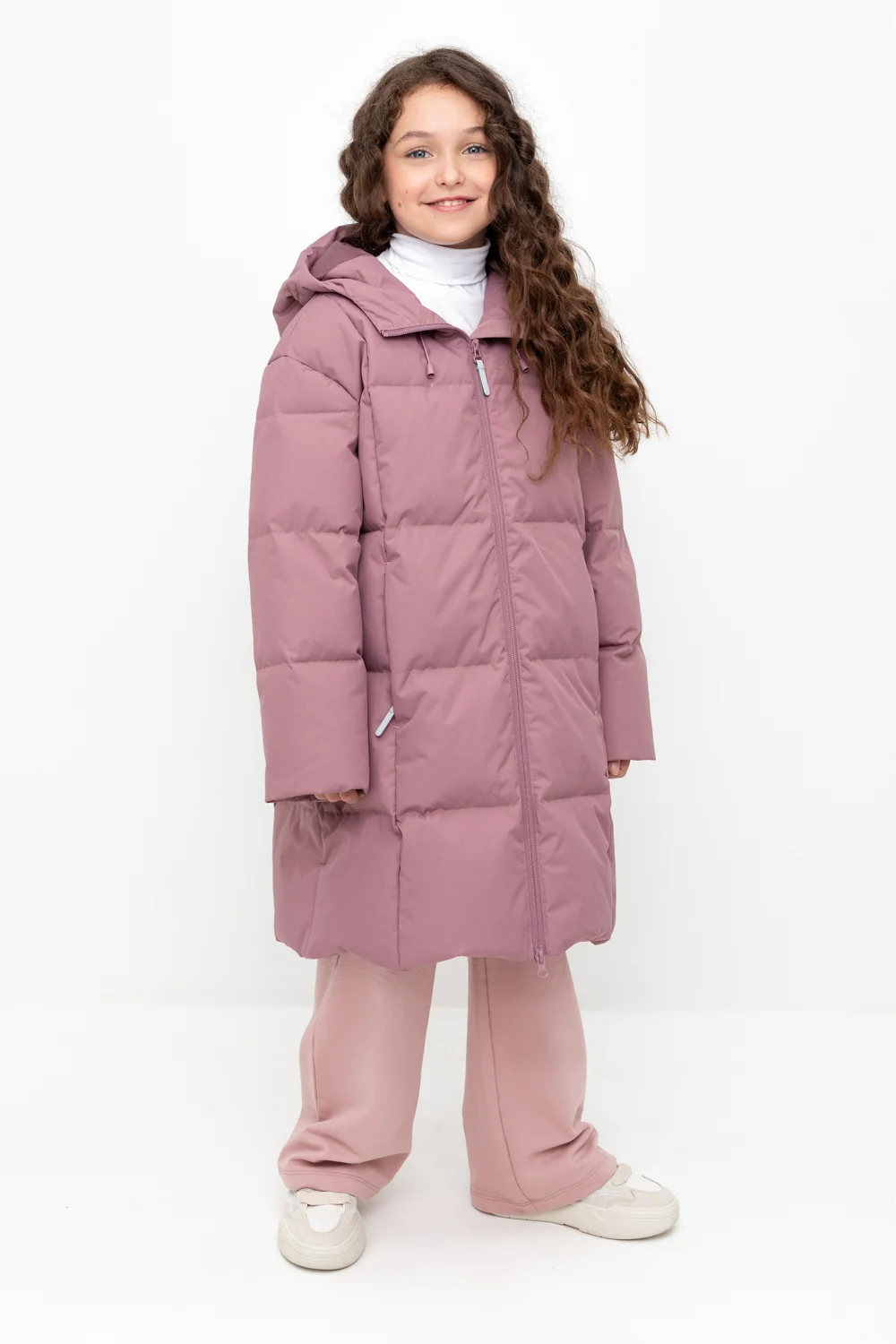 Пальто для девочки с натуральным утеплителем из гипоаллергенного гусиного пуха (70%) и пера (30%).