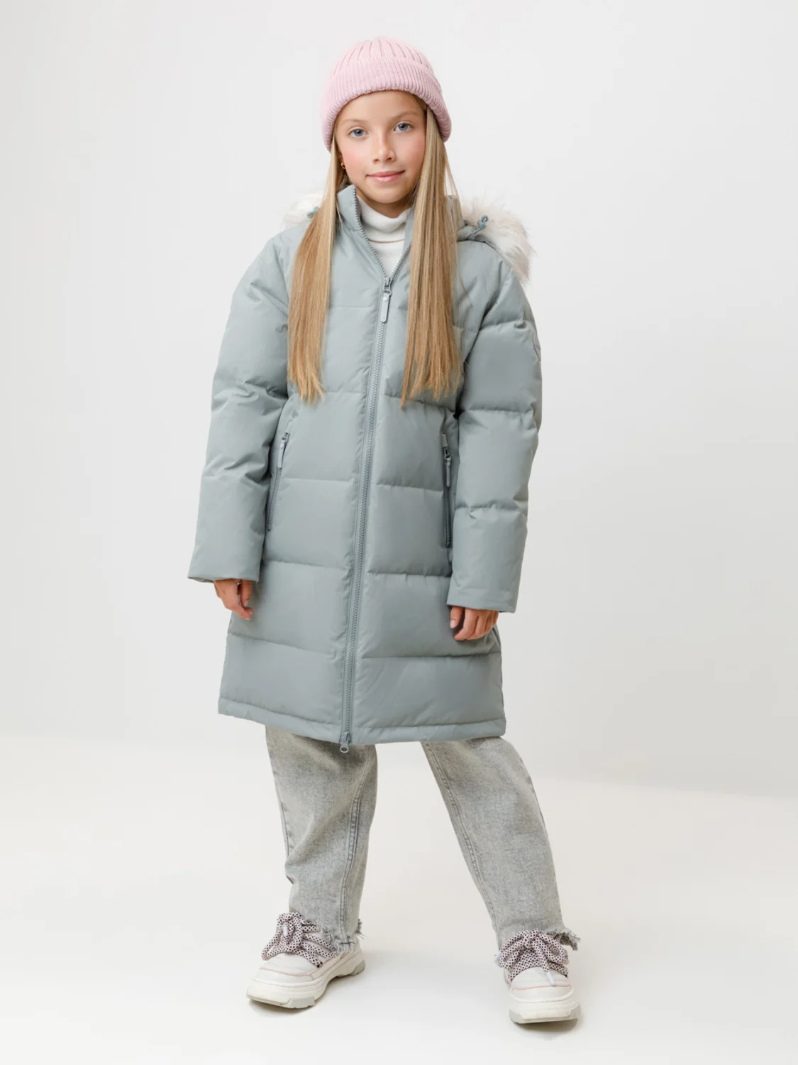 Зимнее пальто для девочки с натуральным утеплителем из гусиного пуха (70%) и пера (30%). Выполнено из мембранной ткани с дополнительной тефлоновой обработкой, которая предохраняет изделие от загрязнений и отталкивает влагу. Подклад выполнен из 100% полиэстера. Пальто застёгивается на молнию, предусмотрена защита подбородка. Несъёмный капюшон имеет эластичные утяжки и отстёгивающийся искусственный мех. По бокам два кармана на молнии. В рукавах мягкие внутренние манжеты. Во всех изделиях верхнего ассортимента для безопасности ребёнка предусмотрены светоотражающие элементы.