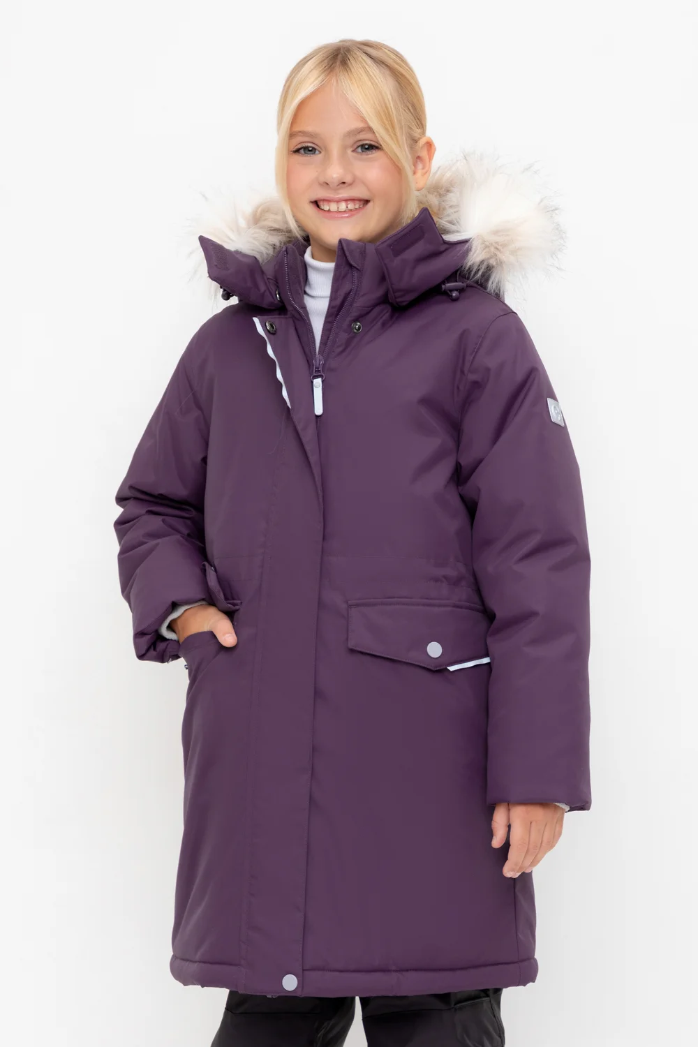 • Съемный капюшон на кнопках и липучках с отстегивающимся искусственным мехом