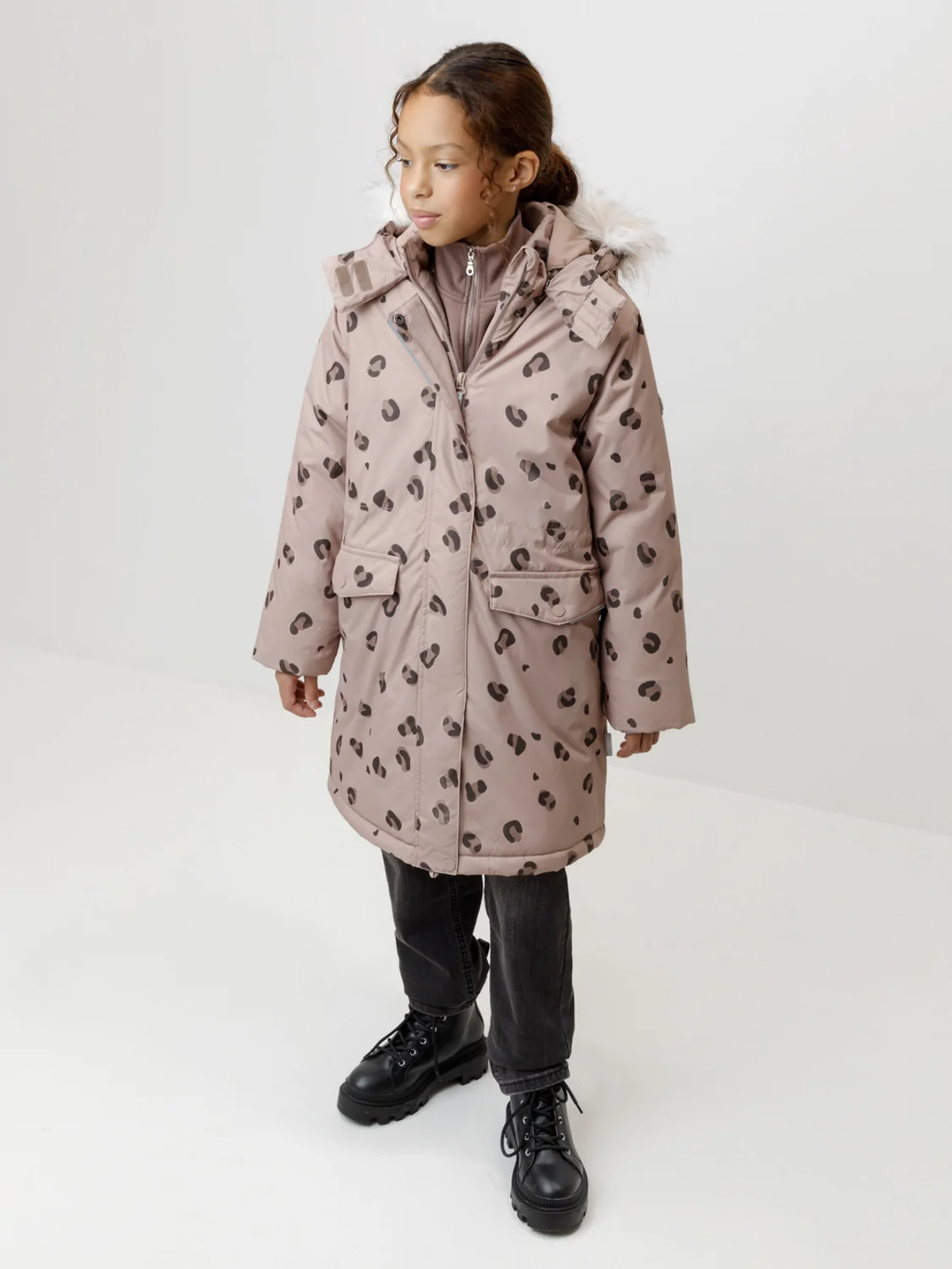 Зимнее пальто для девочки с утеплителем SEE®: 300 г/м2. Выполнено из мембранной ткани с дополнительной тефлоновой обработкой, которая предохраняет изделие от загрязнений и отталкивает влагу. Подклад выполнен из 100% полиэстера Tricot. Пальто застёгивается на молнию, предусмотрена защита подбородка. Съёмный капюшон на кнопках и липучках имеет отстёгивающийся искусственный мех. На рукавах мягкие манжеты. По бокам два кармана с клапанами, внутри карман на молнии. По талии эластичная утяжка со стопперами для регулировки ширины пальто. Во всех изделиях верхнего ассортимента для безопасности ребёнка предусмотрены светоотражающие элементы.