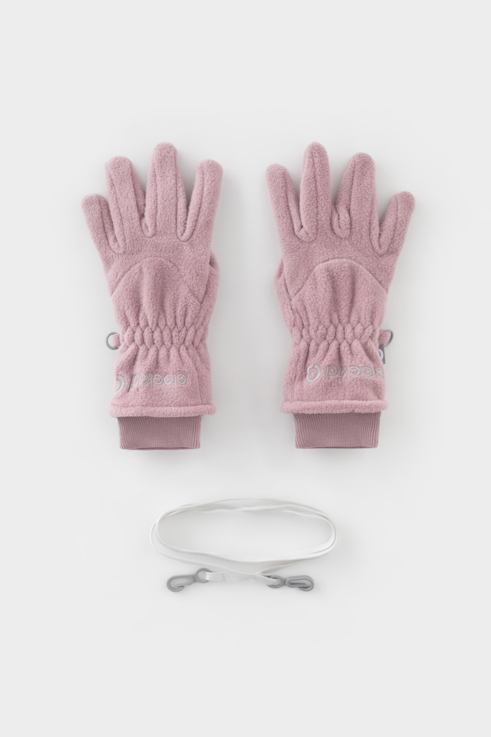 Перчатки детские из однотонного флиса с длинными манжетами на шнурке. В области запястья вшита эластичная резинка. Перчатки сохраняют цвет и форму после многократных стирок.
