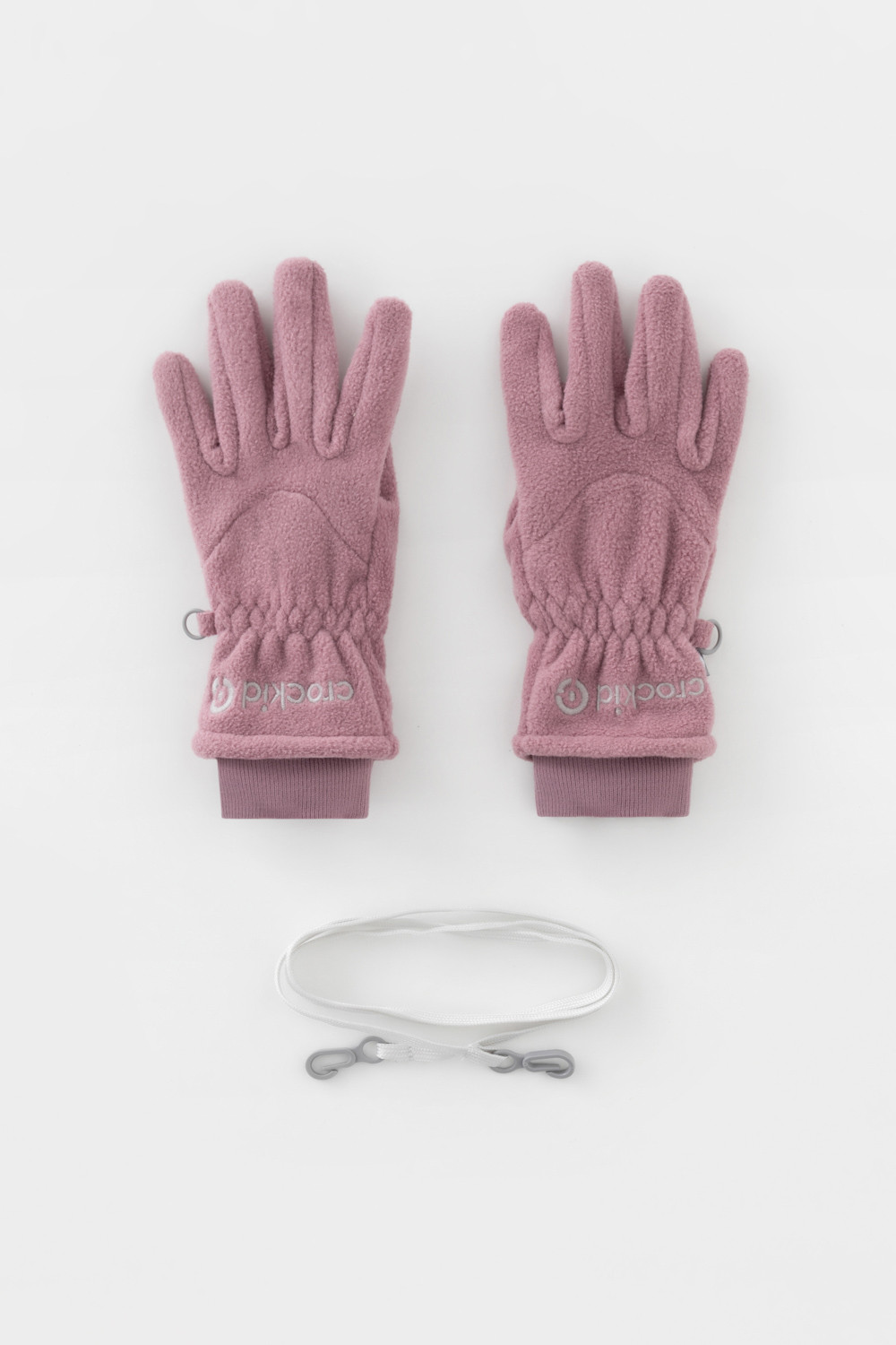 Перчатки детские из однотонного флиса с длинными манжетами на шнурке. В области запястья вшита эластичная резинка. Перчатки сохраняют цвет и форму после многократных стирок.
