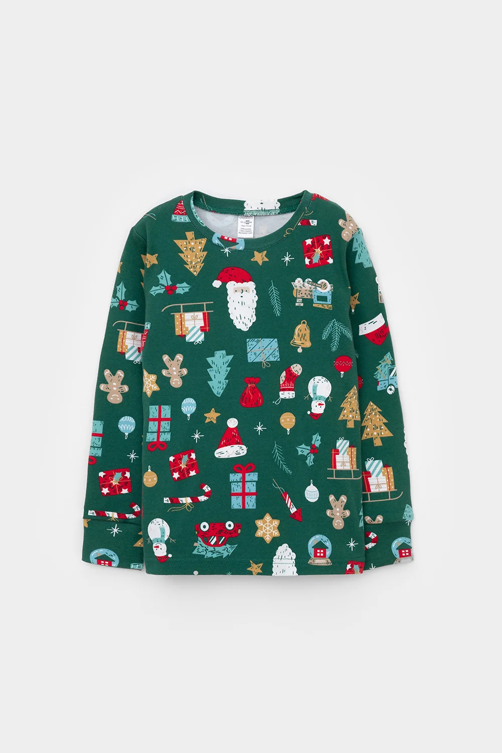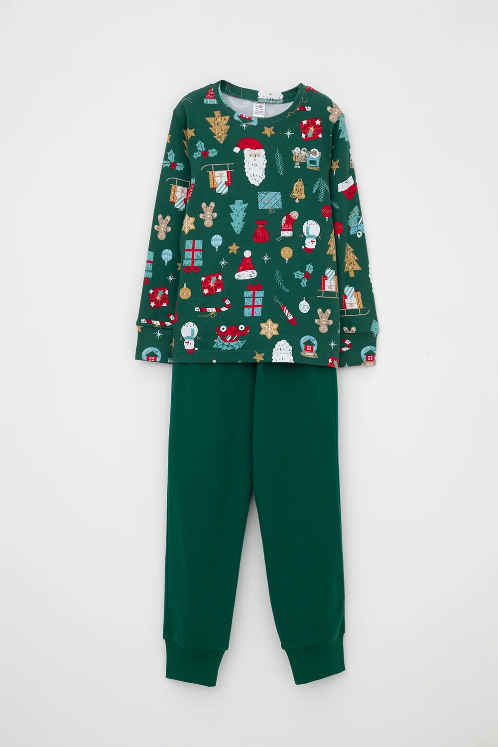 CROCKID Пижама К 1552 тем.зеленый, новогоднее ассорти