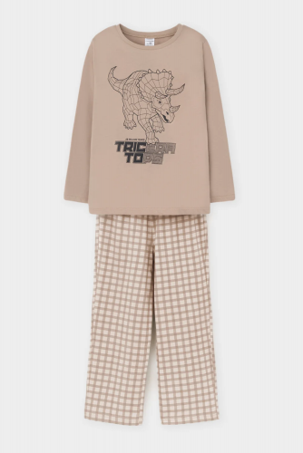 Трикотажная пижама из натурального хлопка. Джемпер с длинными втачными рукавами и брюки с эластичной резинкой в поясе. Мягкие манжеты по низу брюк. Оригинальная набивка выполнена из стойких гипоаллергенных текстильных гипоаллергенных красителей. Изделие сохраняет цвет и форму после многократных стирок. Все трикотажные полотна производятся в соответсвии с нормами швейцарского сертификата ЭкоТекс.