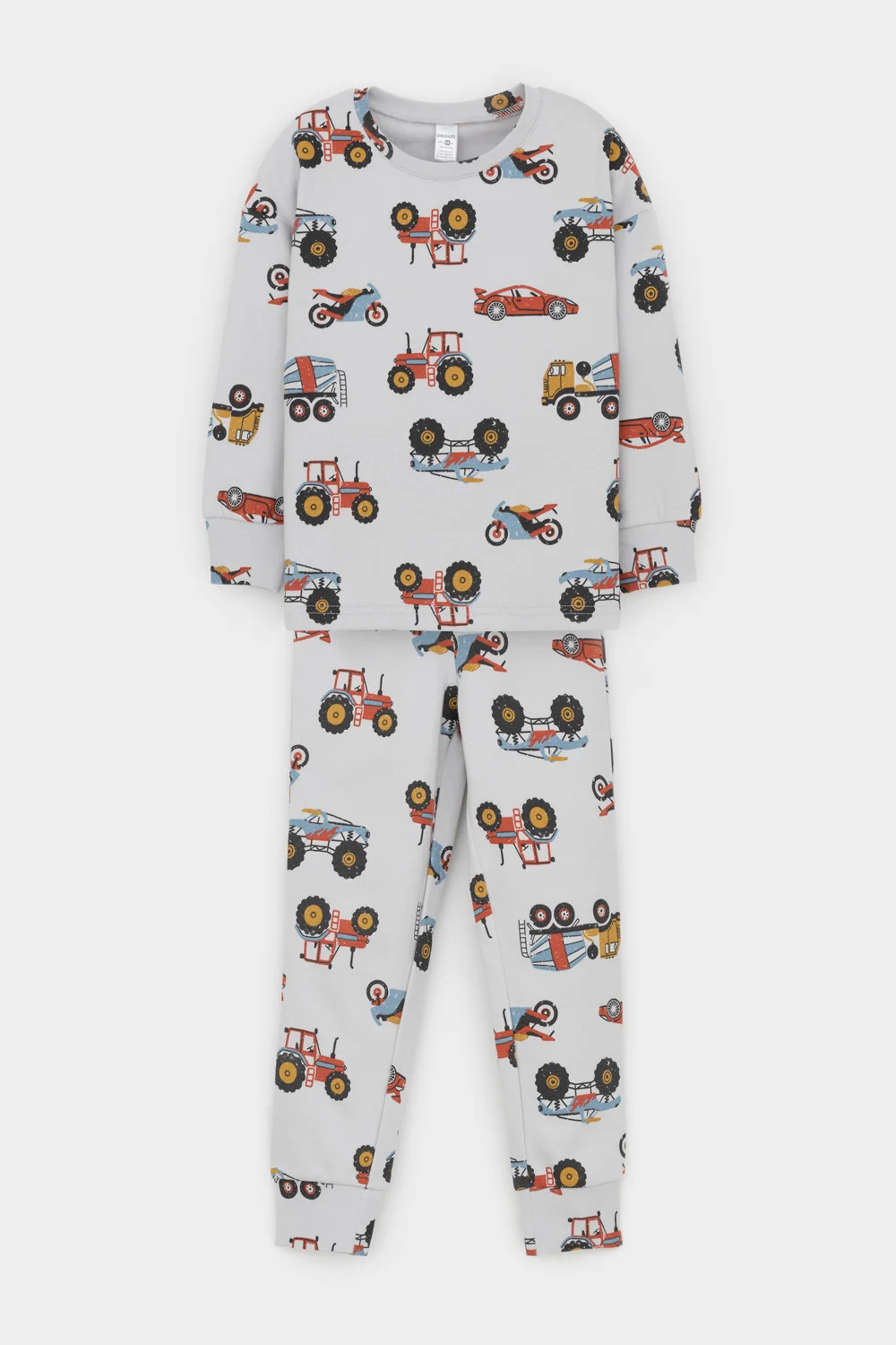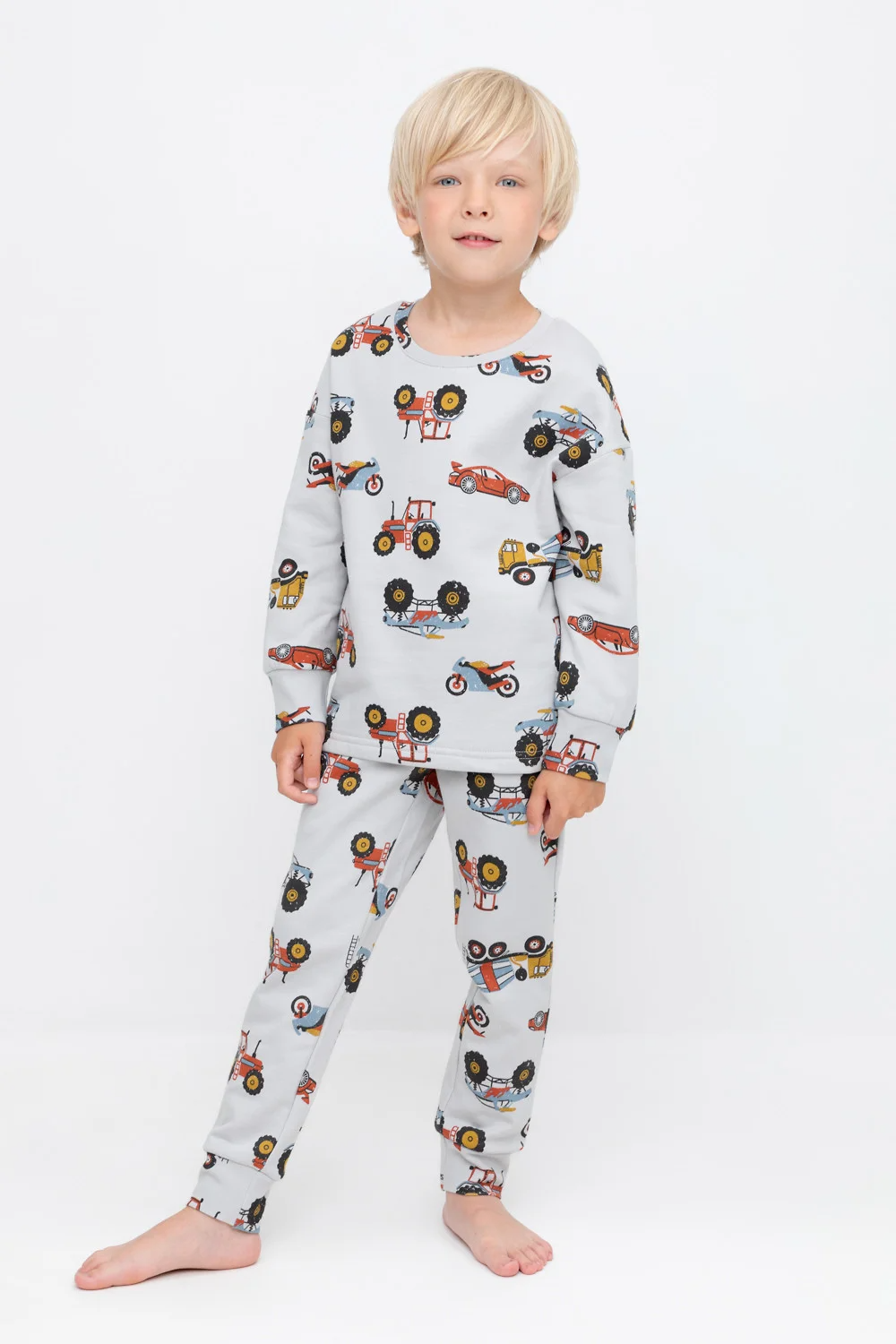 Трикотажный пижамный комплект из футера с начёсом, произведённого из натурального хлопка. У джемпера длинные рукава со спущенными плечами и эластичная мягкая горловина и манжеты. Брюки с удобным поясом на резинке, внизу манжеты. Оригинальная набивка выполнена из стойких, гипоаллергенных текстильных красителей. Все трикотажные полотна производятся в соответствии с нормами Швейцарского сертификата ЭкоТекс.