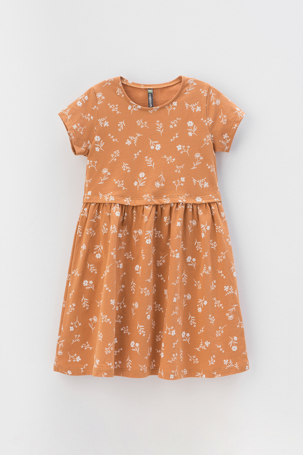 Лёгкое трикотажное платье с короткими рукавами из высококачественного хлопка. Оригинальная набивка выполнена из стойких текстильных гипоаллергенных красителей. Изделие сохраняет цвет и форму после многократных стирок.