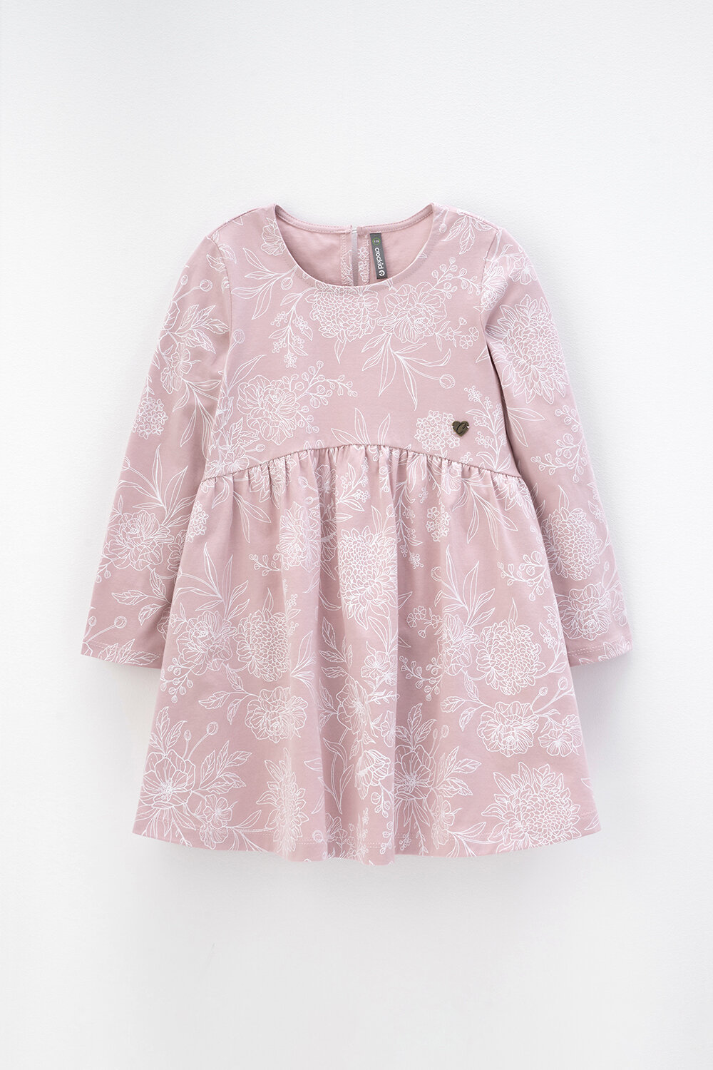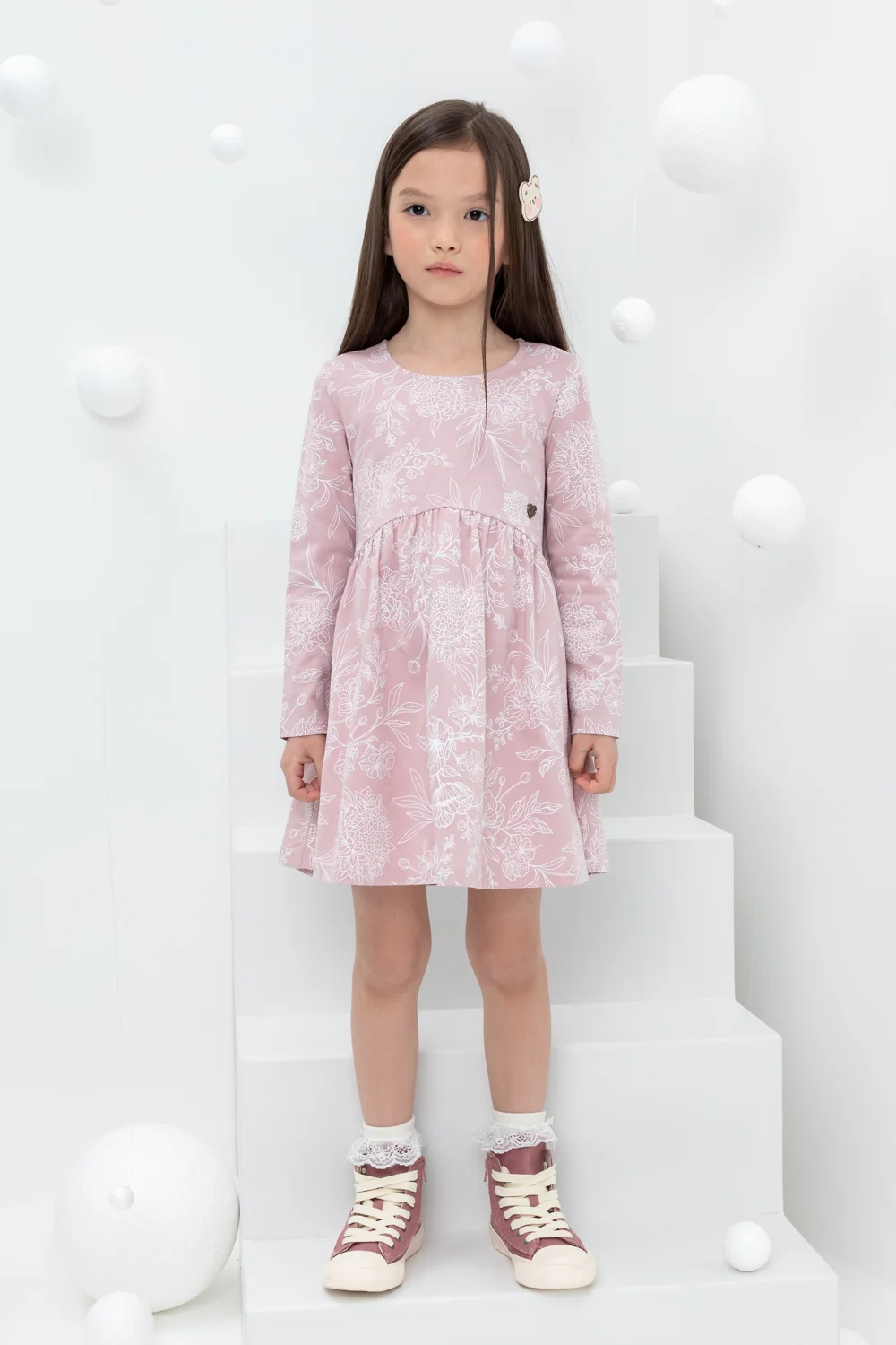 Лёгкое трикотажное платье с длинными рукавами из высококачественного хлопка. Оригинальная набивка выполнена из стойких текстильных гипоаллергенных красителей. Изделие сохраняет цвет и форму после многократных стирок.