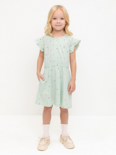Платье для девочки из высококачественного трикотажа супрем. Верх украшен изящными крылышками. Для удобства одевания платье застёгивается на кнопки спереди. Платье сохраняет форму и стойкий цвет после многочисленных стирок и идеально подходит на каждый день.